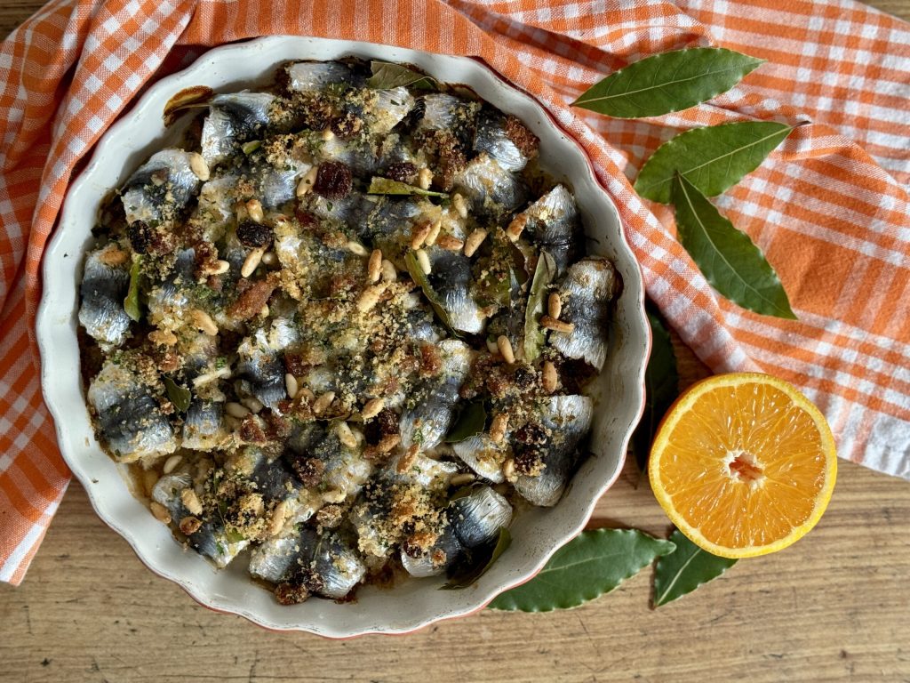 - Cottura: Preparate un’emulsione con l’olio d’oliva, il succo di limone e lo zucchero e versatela sugli involtini. Infornate a 180°C per circa 20 minuti, fino a quando le sardine saranno morbide sotto e leggermente croccanti in superficie.